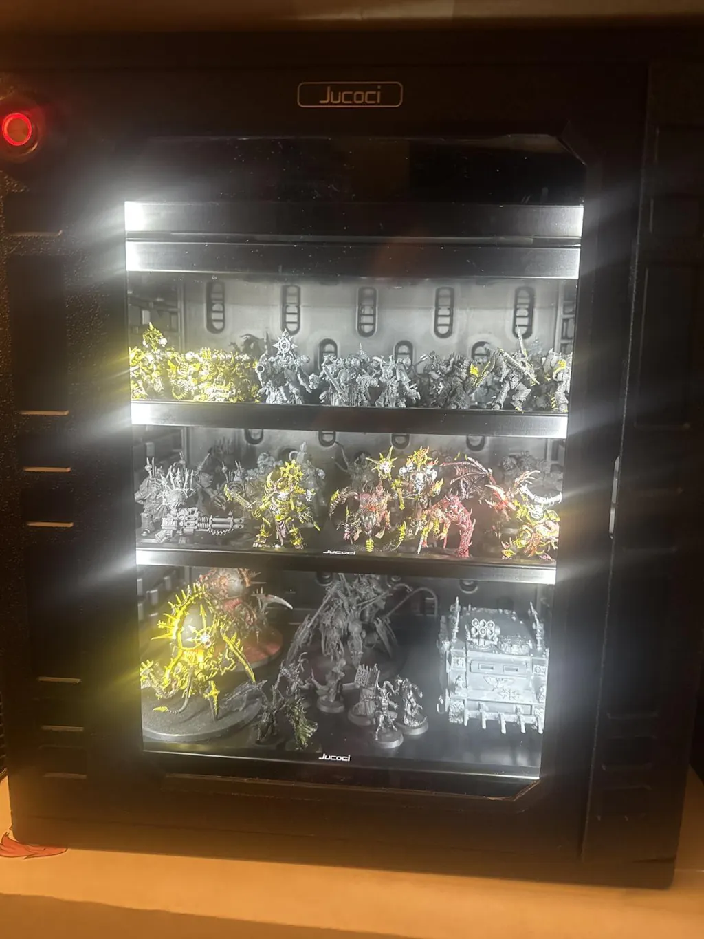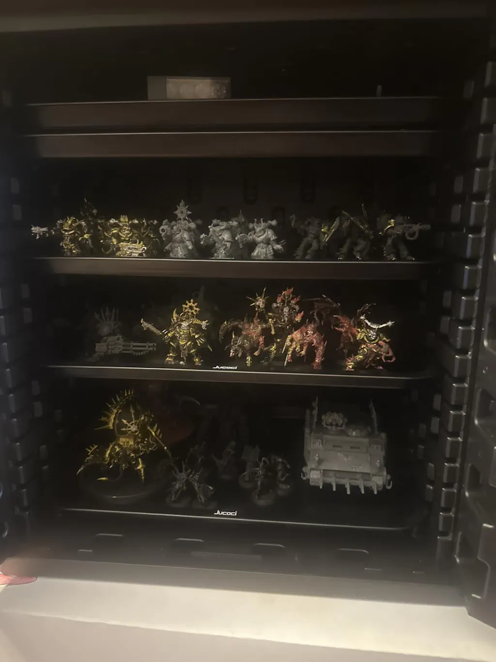 【Big capacity】Jucoci large size miniatures carrying storage case with light can hold about 1500-4000 points of models(depending on the size). It makes it easy to carry your miniatures quickly and prevents them from bumping into each other and getting scratched.
