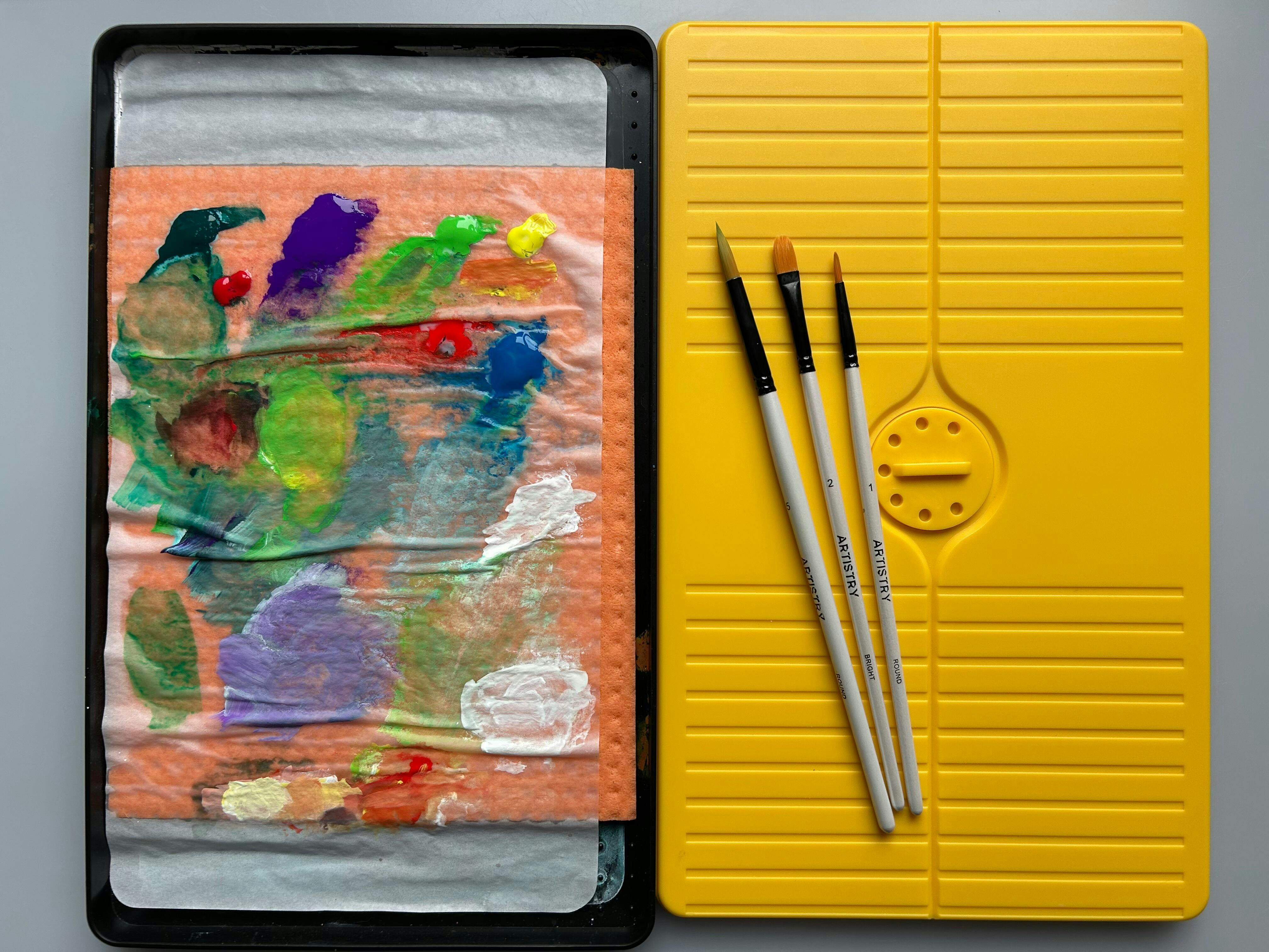 This stay wet palette is wonderfully designed and a larger size than others, which suits my needs perfectly. Whether I'm using acrylics or acrylic gouache, it keeps my paints wet for as long as I need them to be. Perfect for when I'm filming projects for my YouTube channel. Just need to order some replacement hydro foams. 10/10